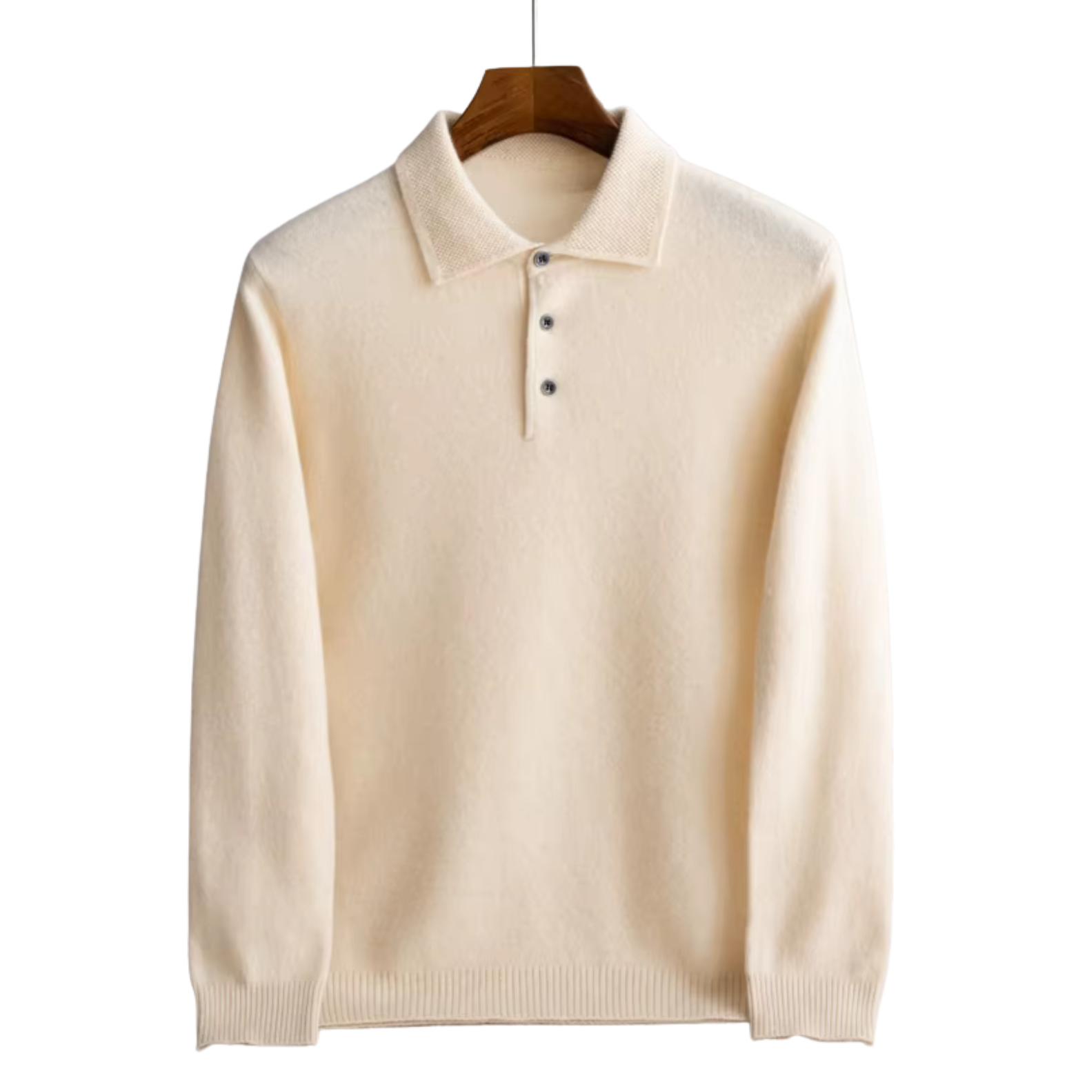 The buttoned polo collar adds a sophisticated detail, allowing effortless transitions between casual and refined looks.