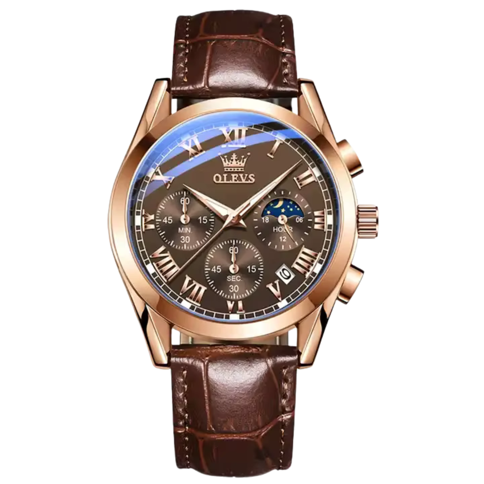 Olevs Chronograph Watch – Brown Leather Strap Quartz