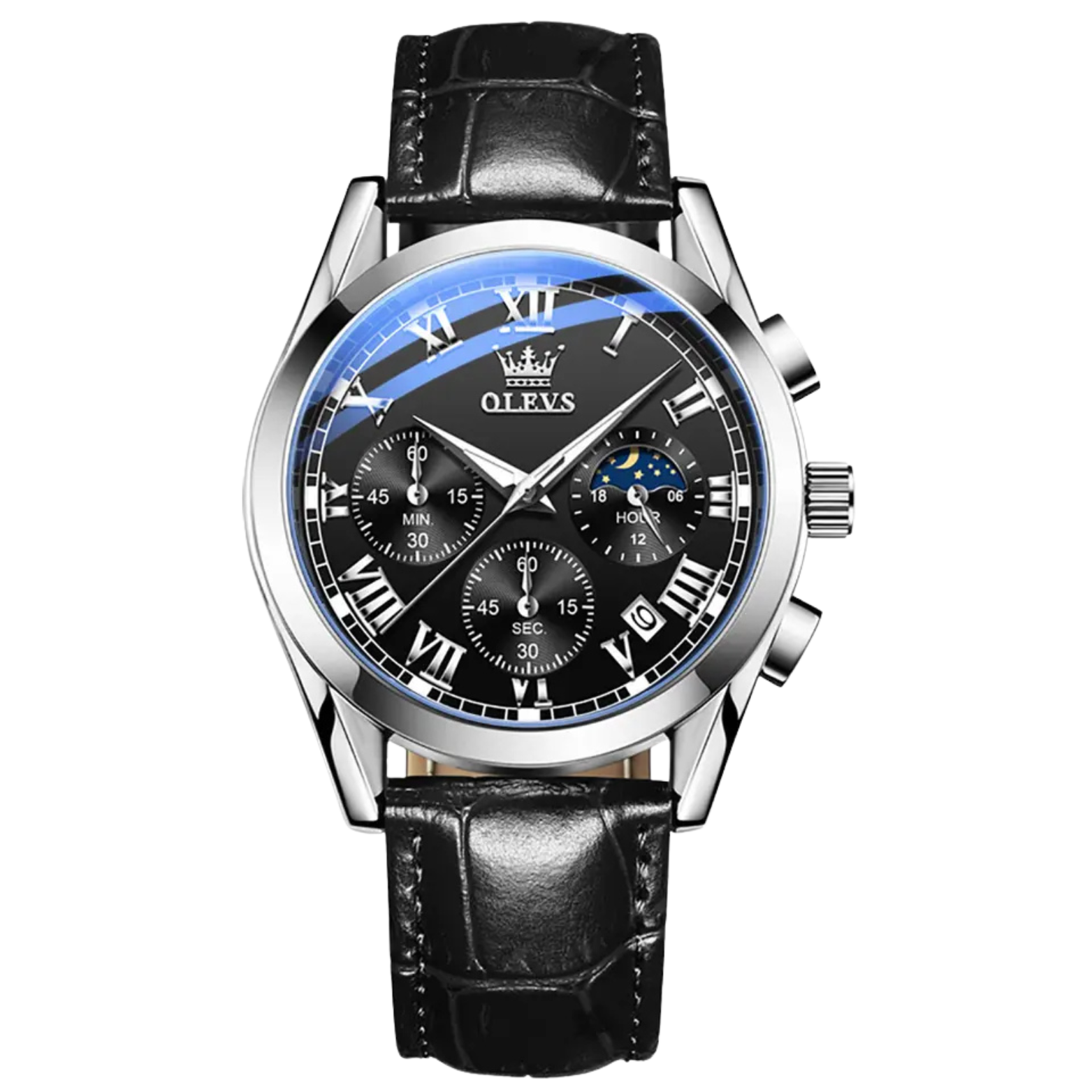 The Olevs Chronograph Watch with brown leather strap and quartz movement delivers classic luxury with modern functionality. Featuring multiple subdials, date display, and refined Roman numerals, it’s perfect for men seeking precision, elegance, and everyday versatility.